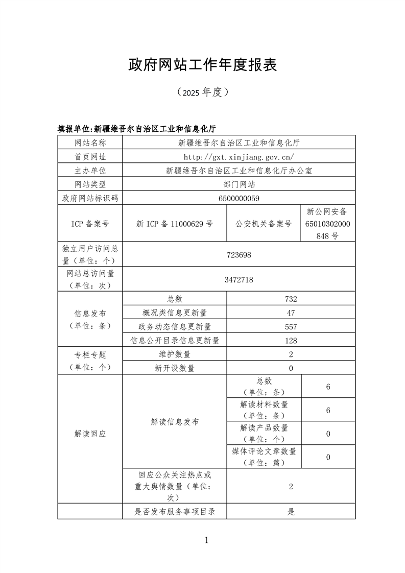 自治区工信厅2025年度政府网站工作年度报表
