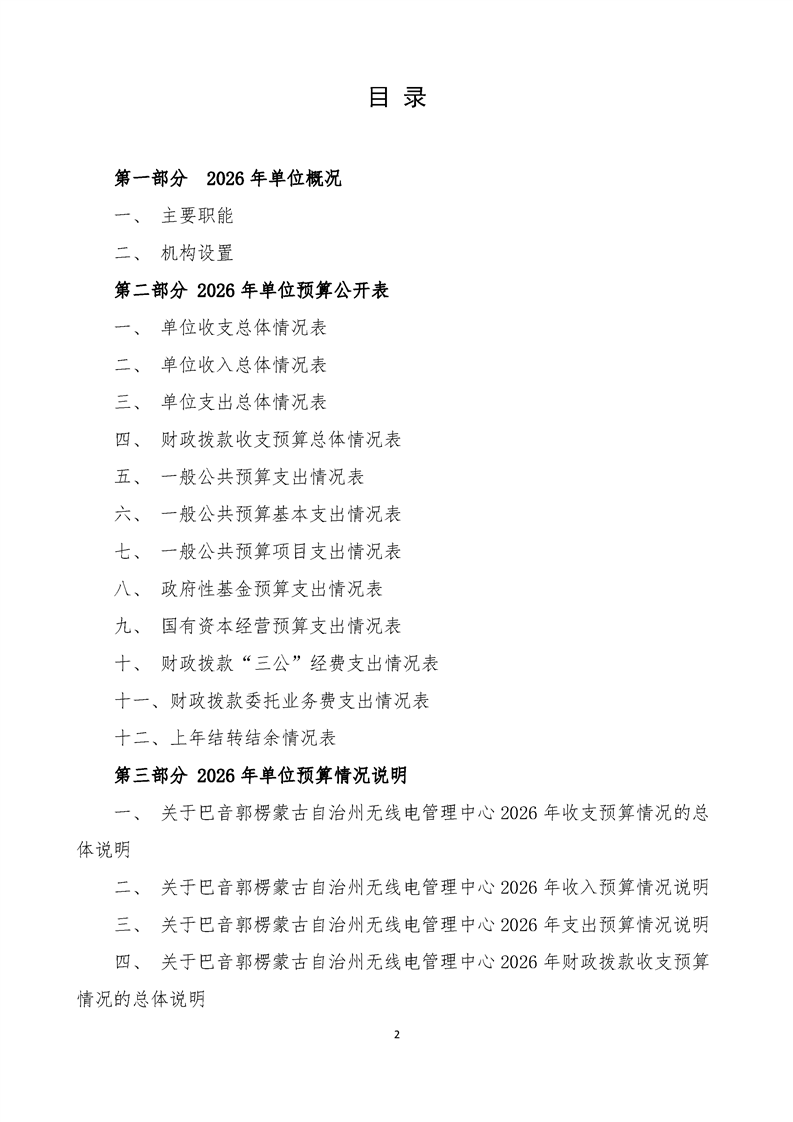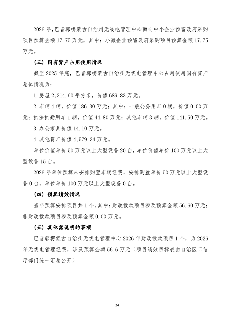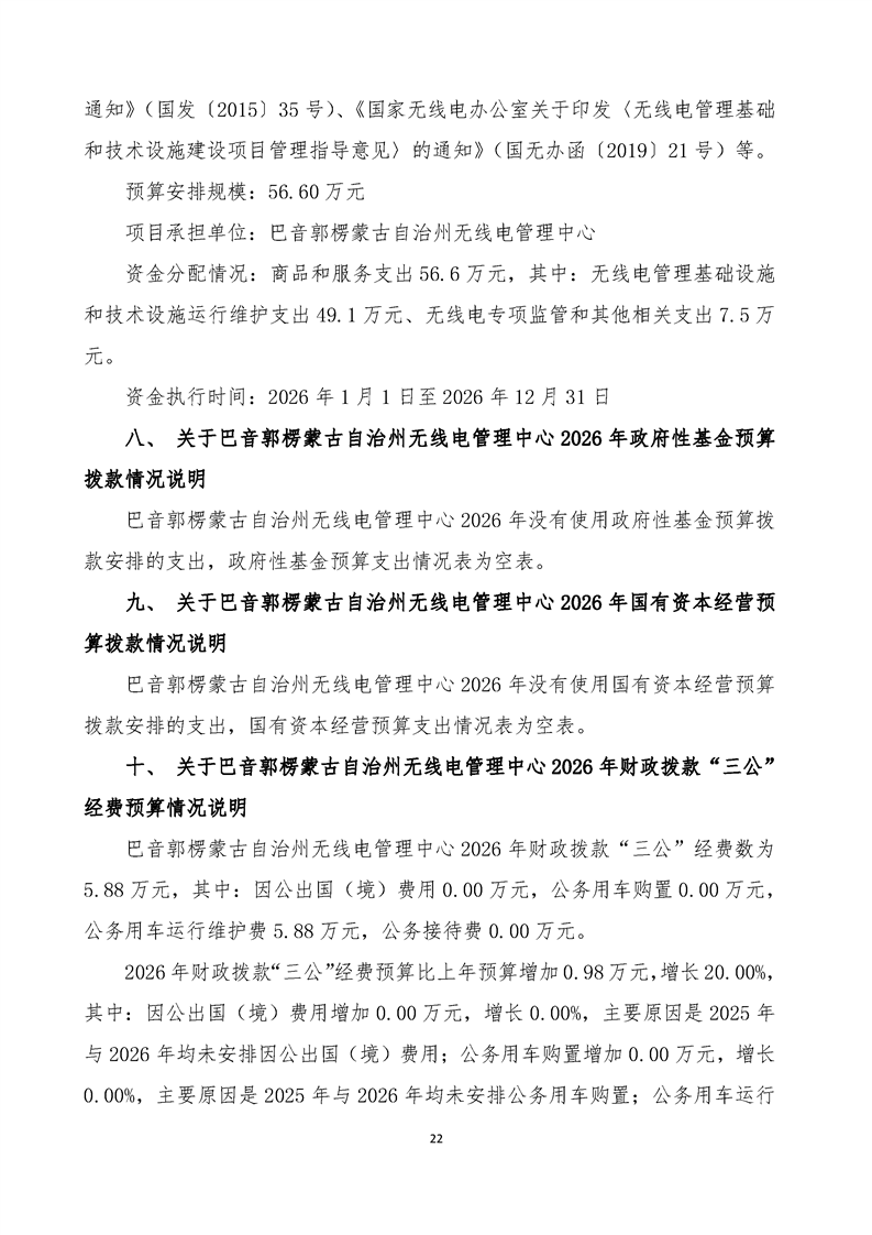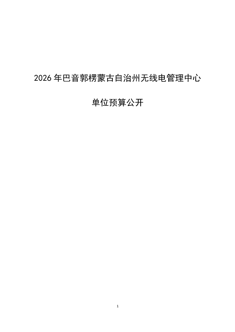 巴音郭楞蒙古自治州无线电管理中心2026年单位预算公开报告