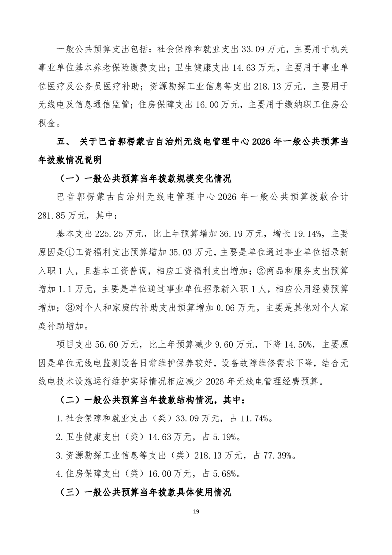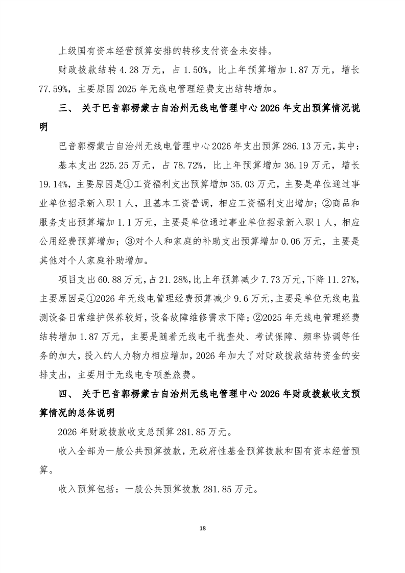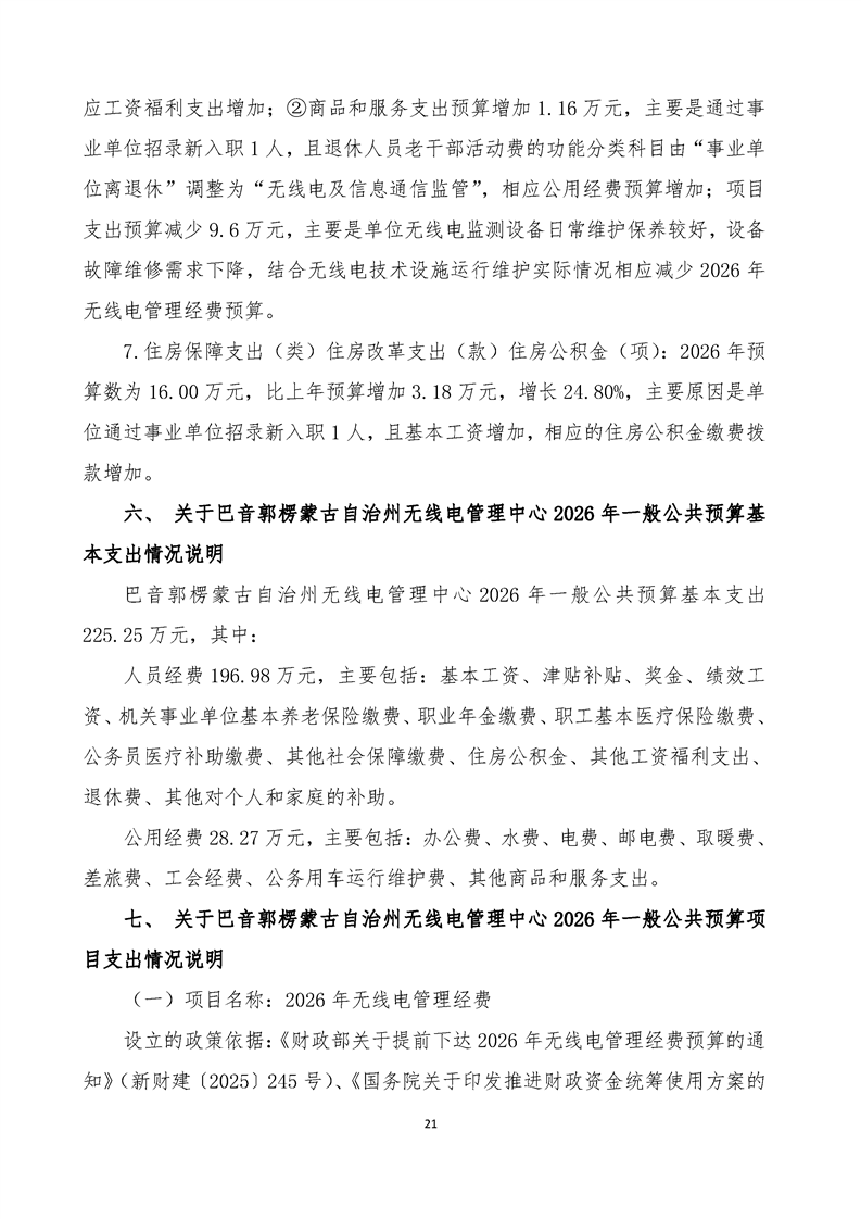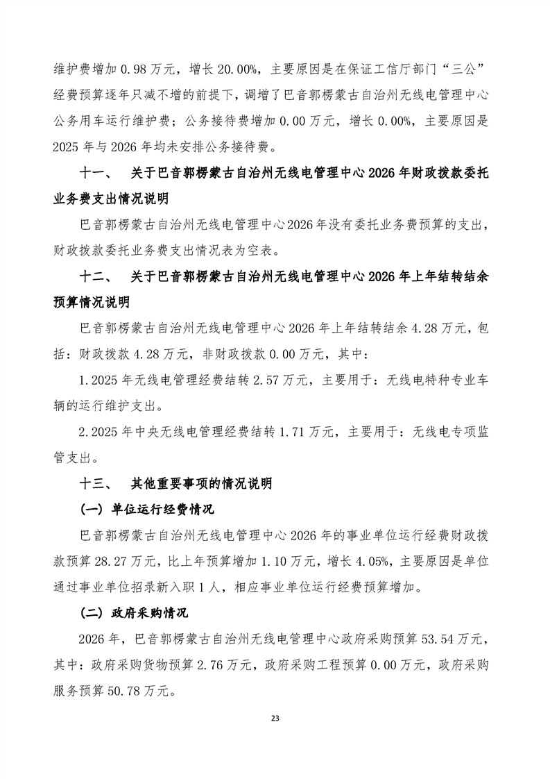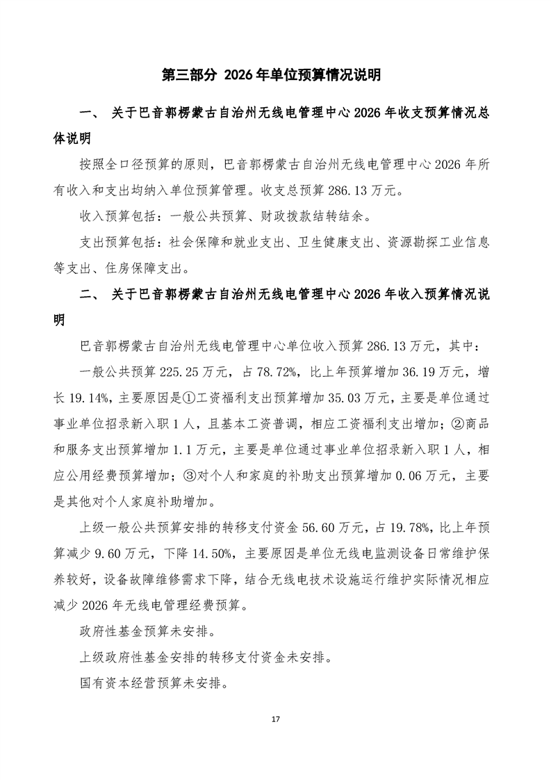 巴音郭楞蒙古自治州无线电管理中心2026年单位预算公开报告