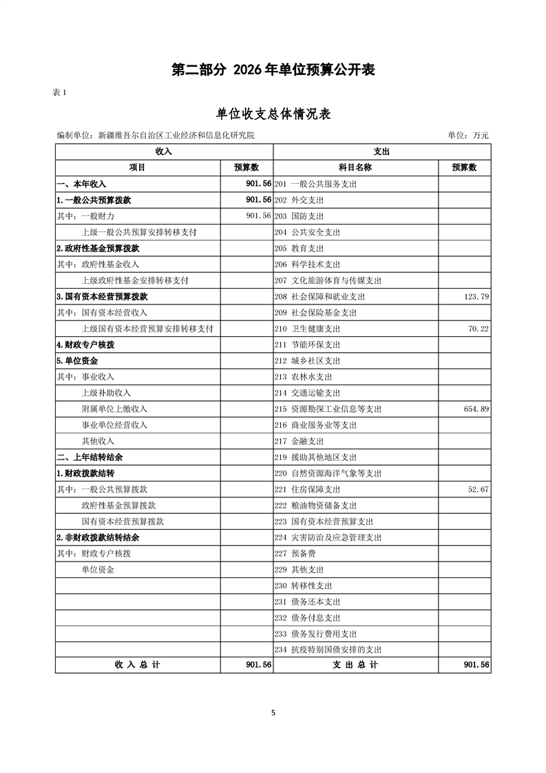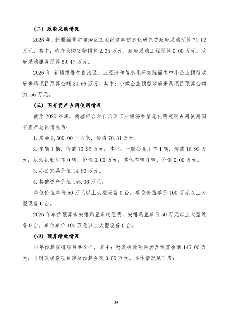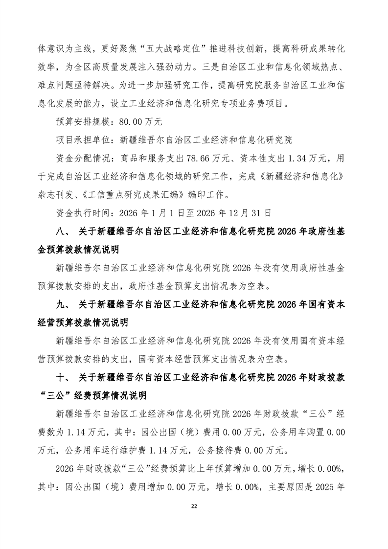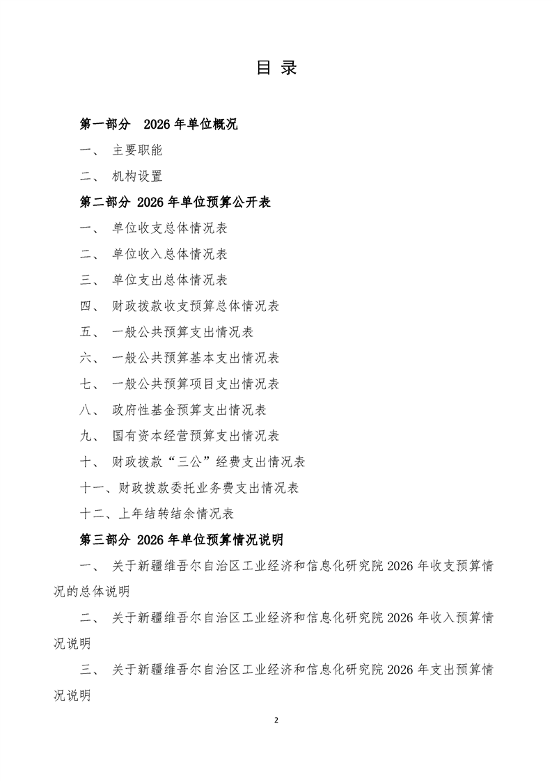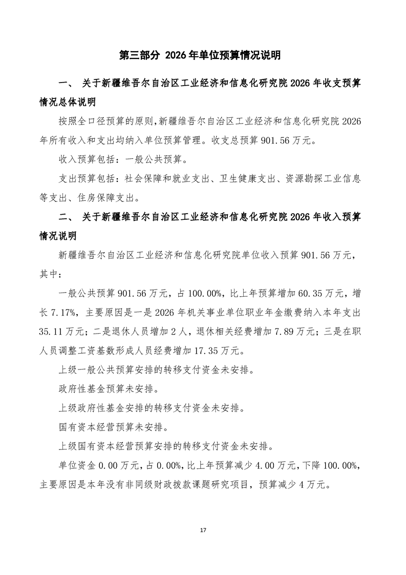 新疆维吾尔自治区工业经济和信息化研究院2026年单位预算公开报告