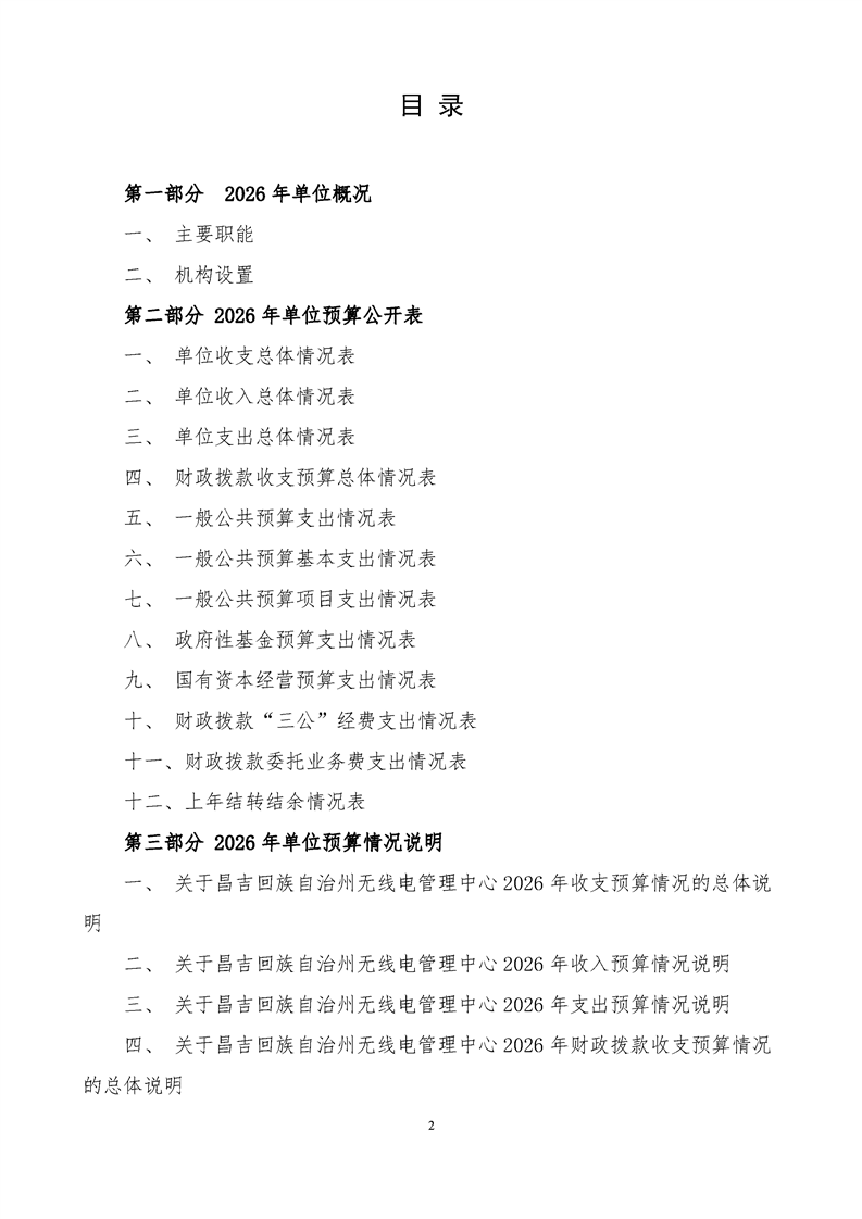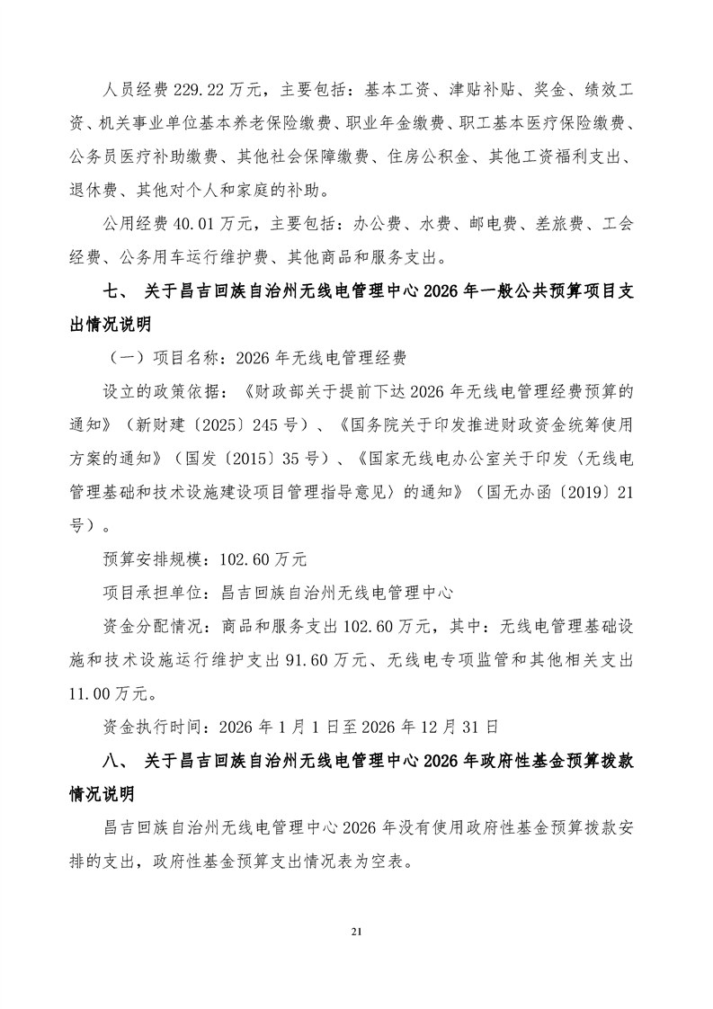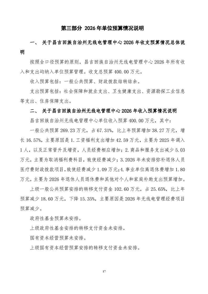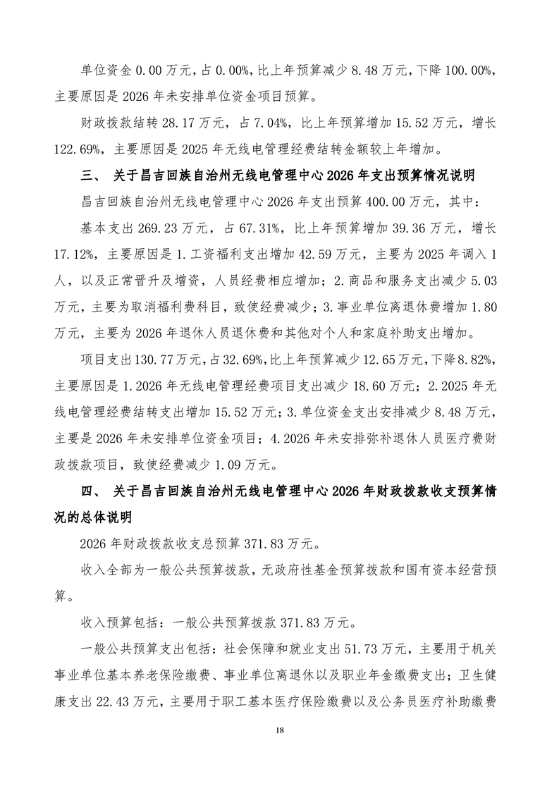 昌吉回族自治州无线电管理中心2026年单位预算公开报告