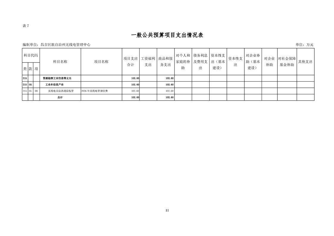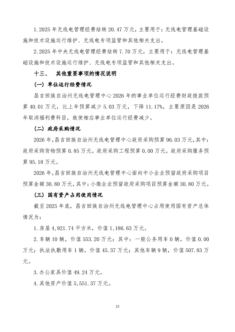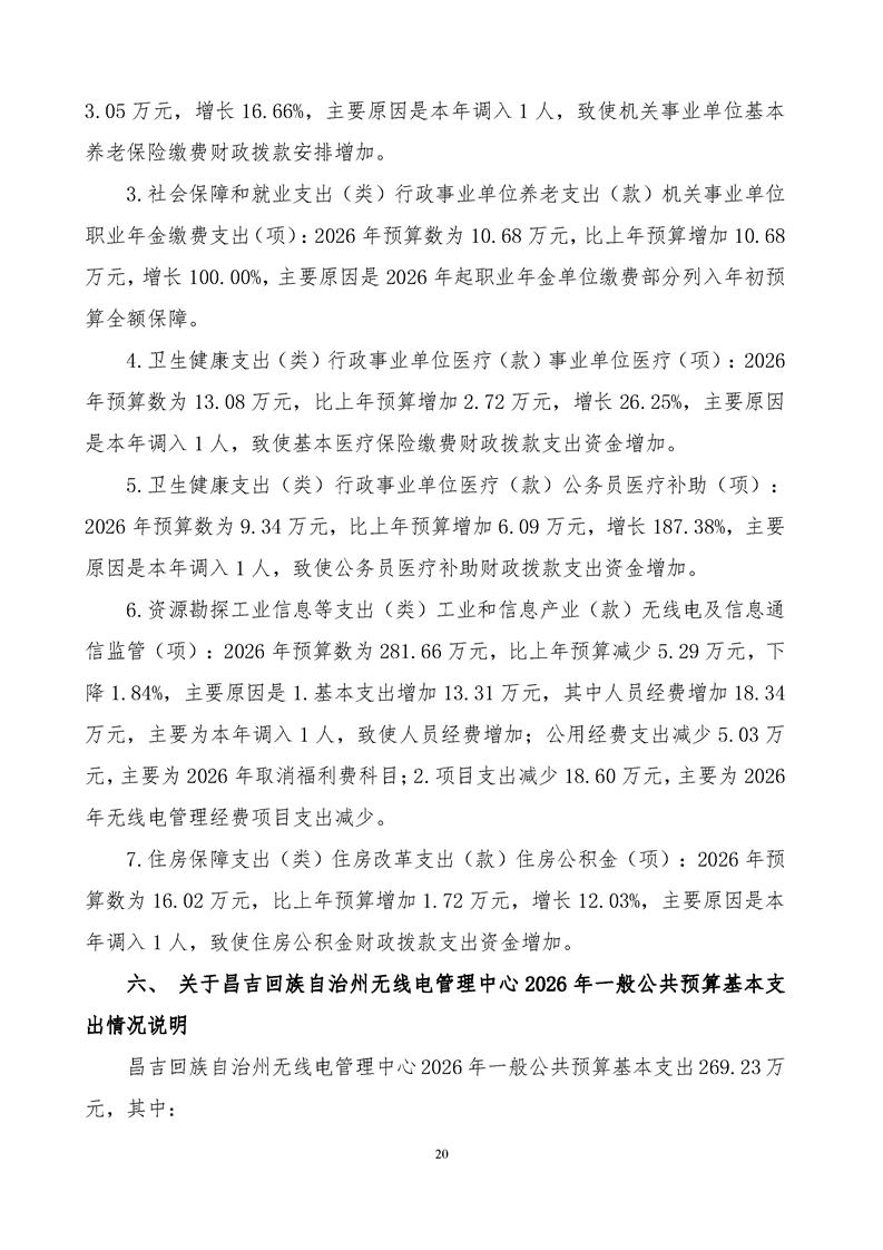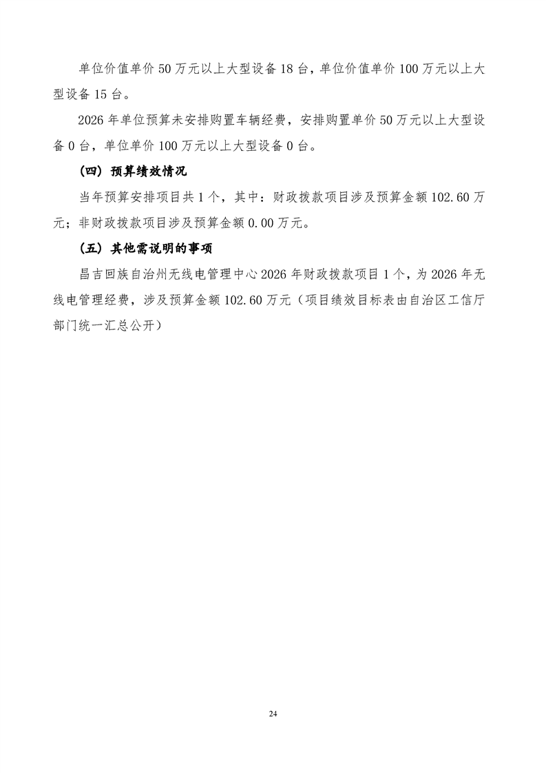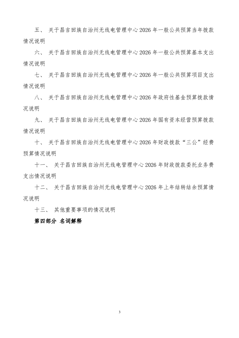 昌吉回族自治州无线电管理中心2026年单位预算公开报告