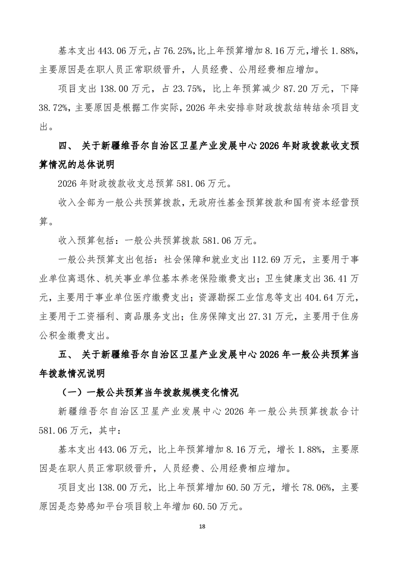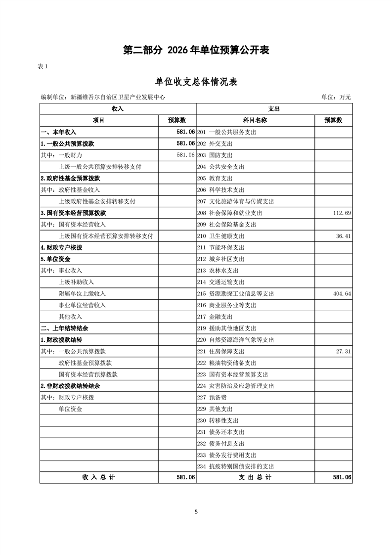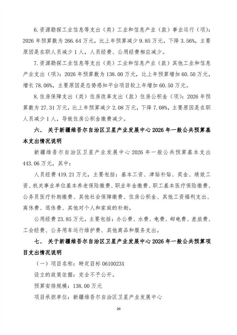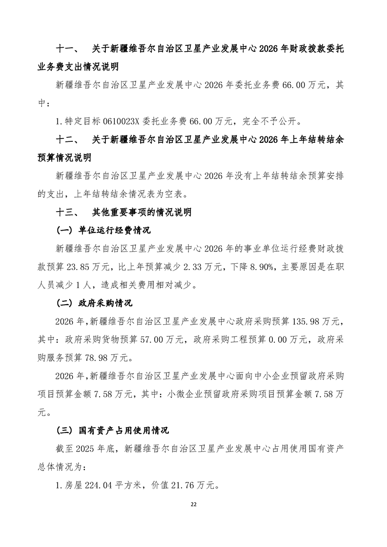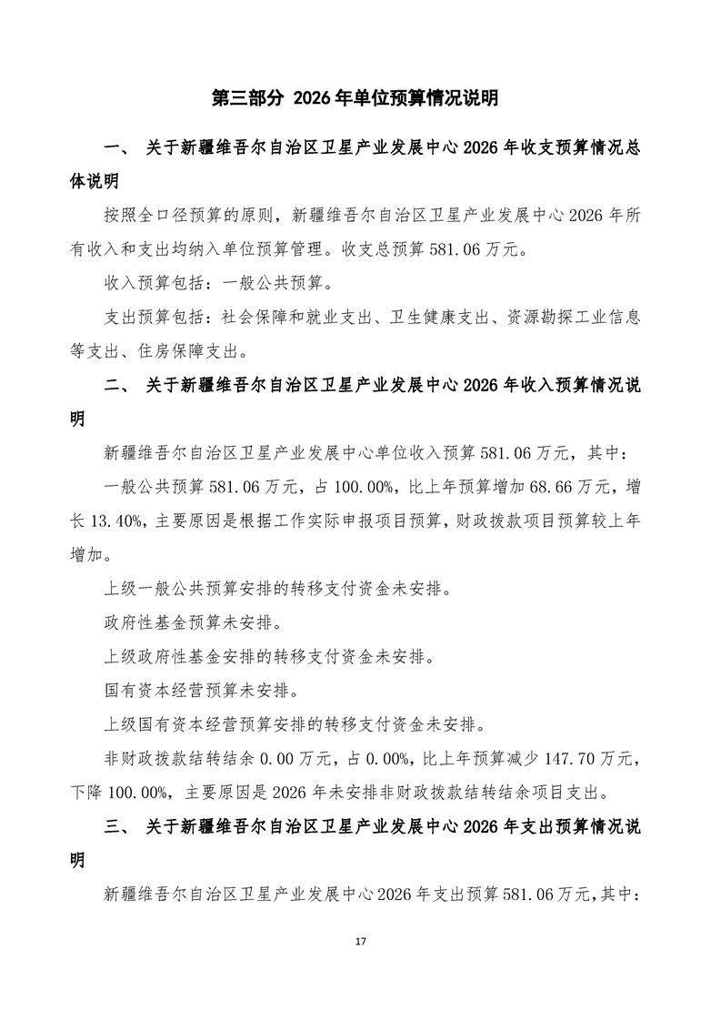 新疆维吾尔自治区卫星产业发展中心2026年单位预算公开报告