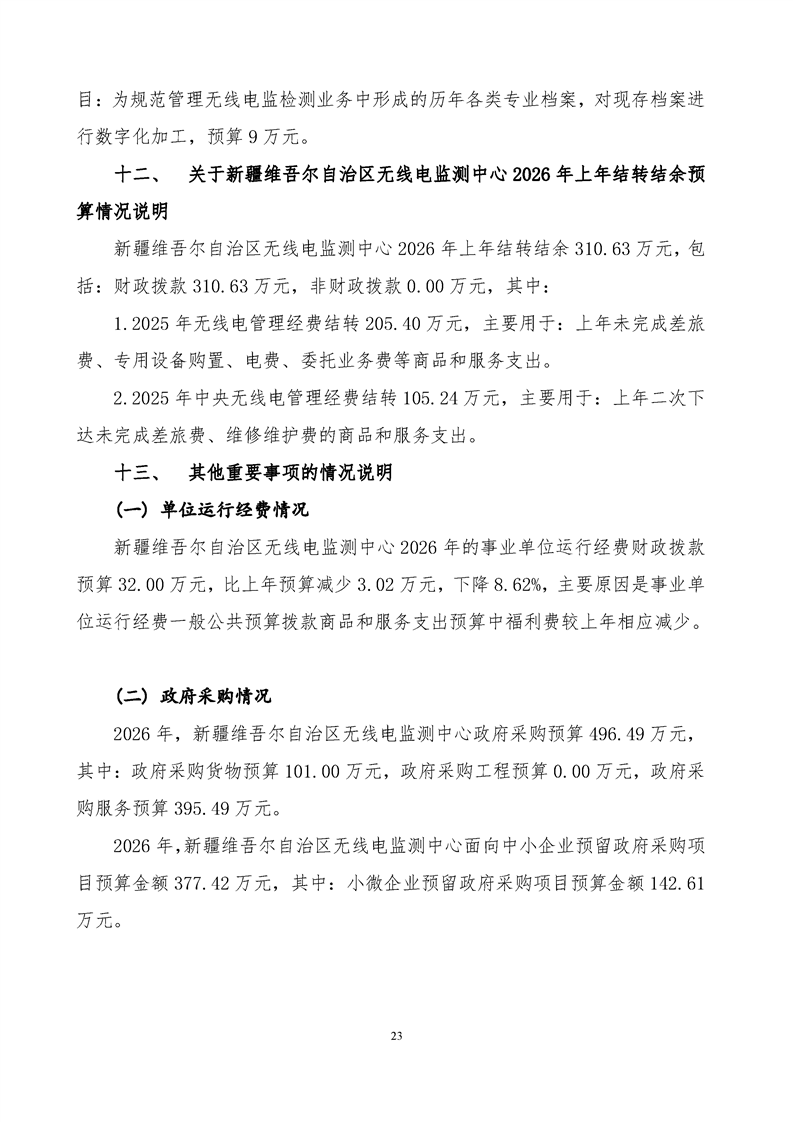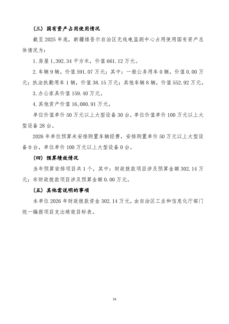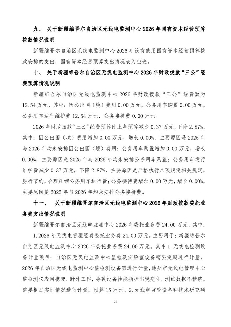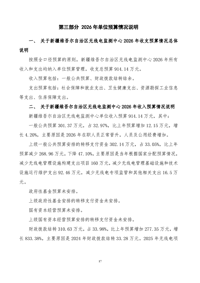 新疆维吾尔自治区无线电监测中心2026年单位预算公开报告