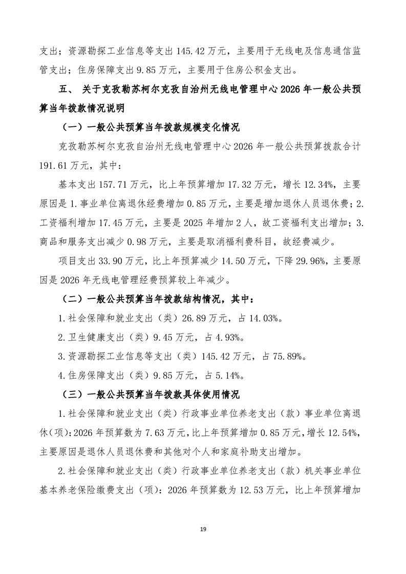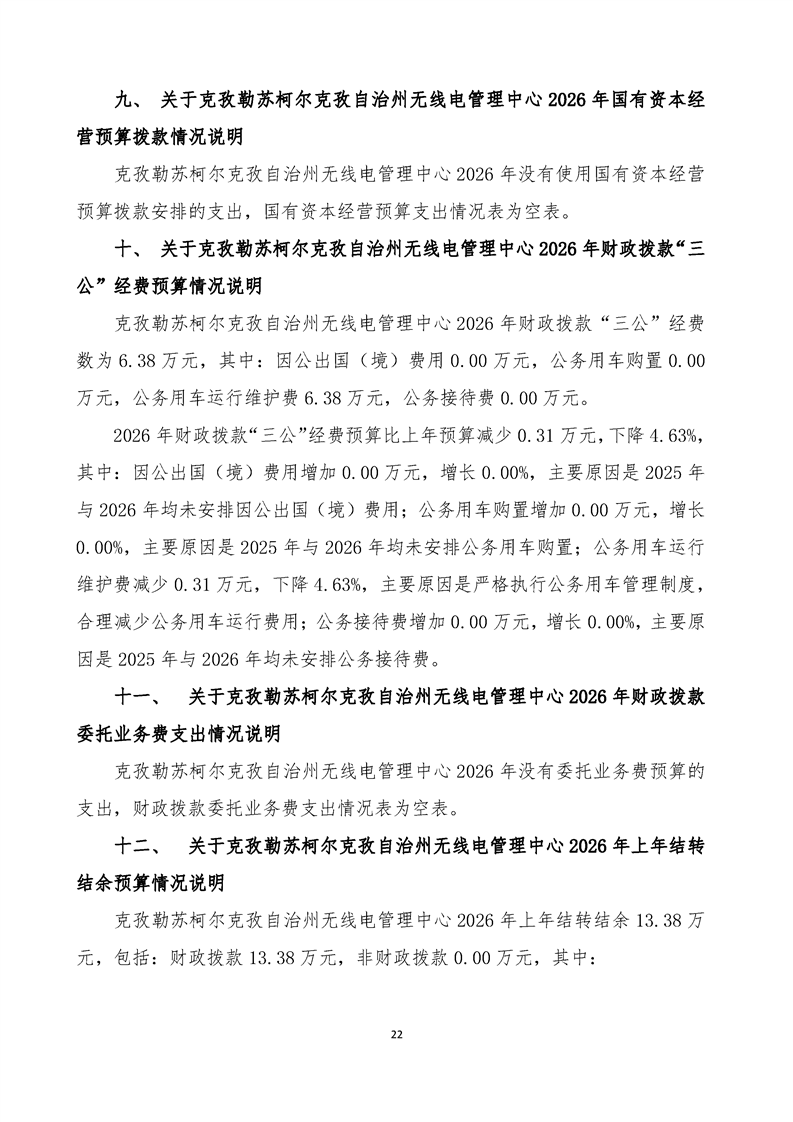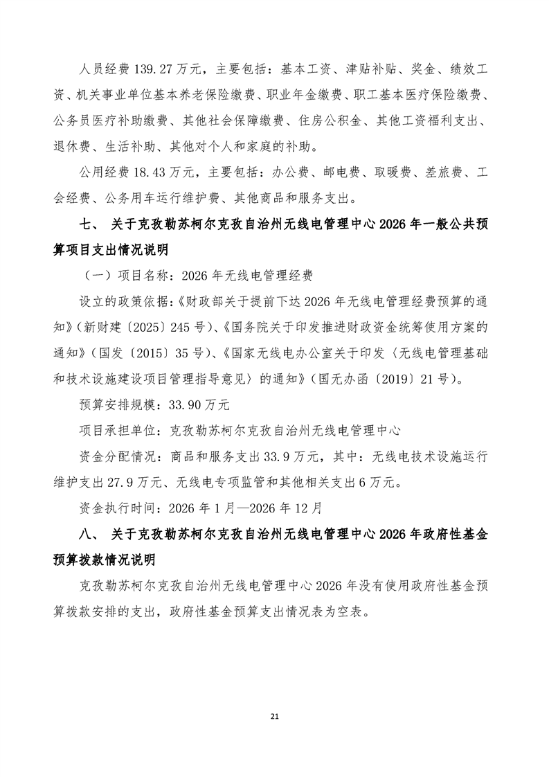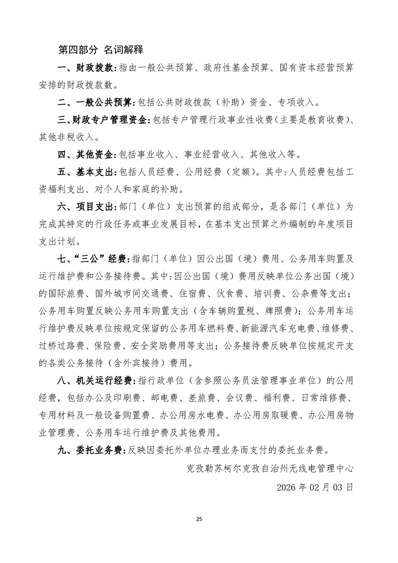 克孜勒苏柯尔克孜自治州无线电管理中心2026年单位预算公开报告