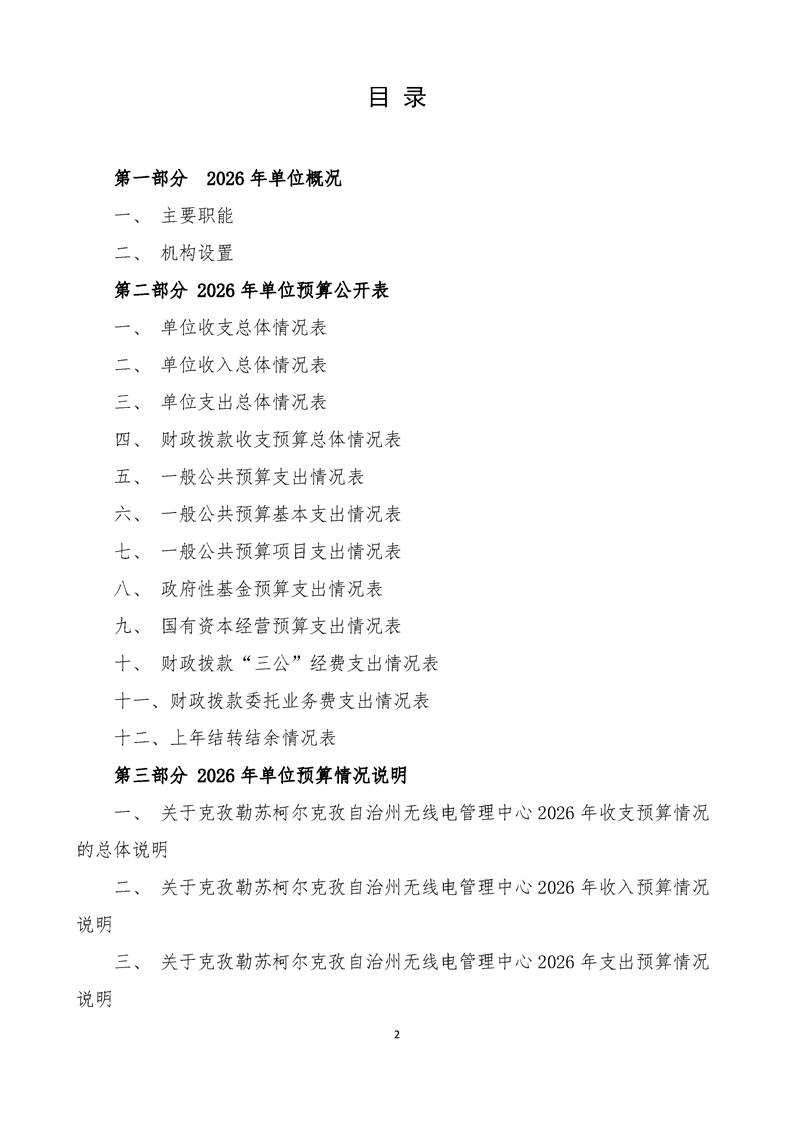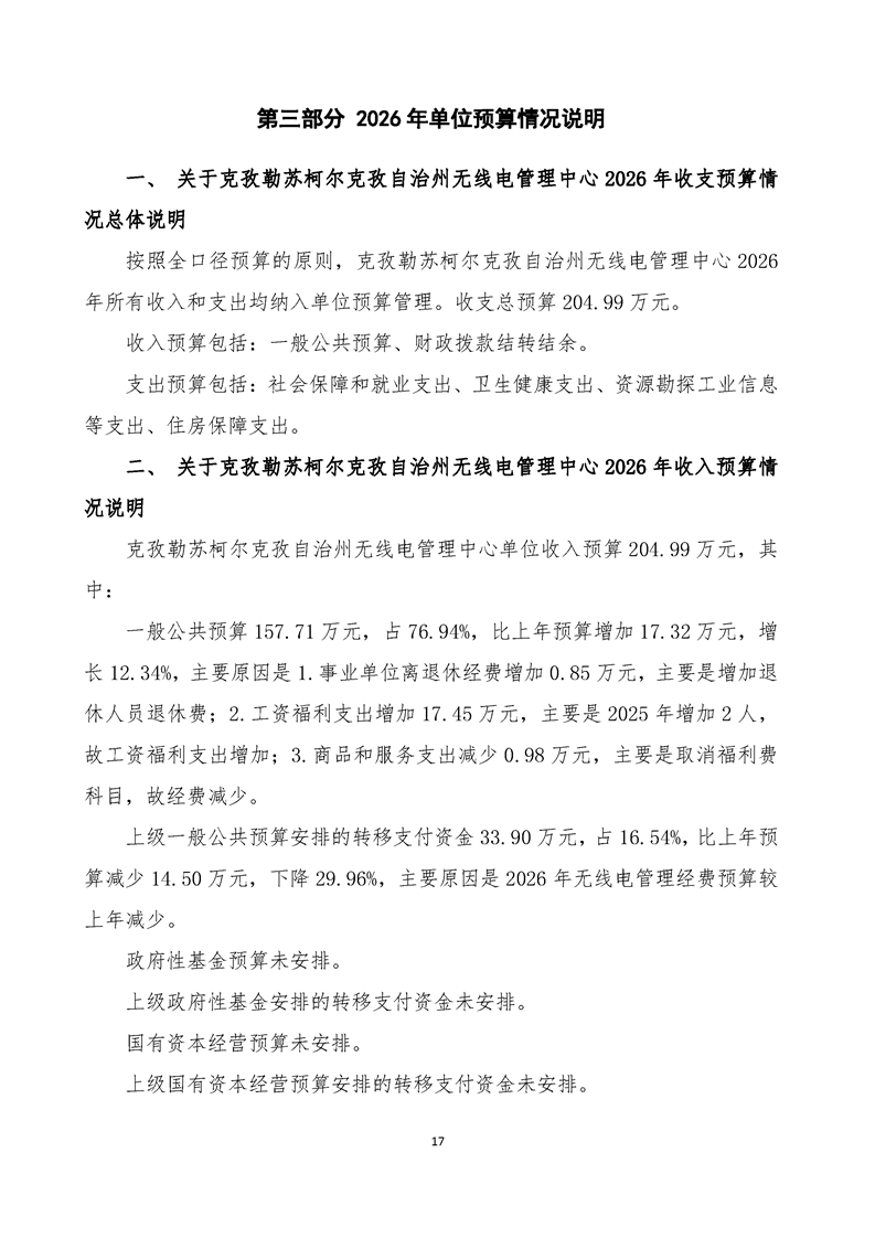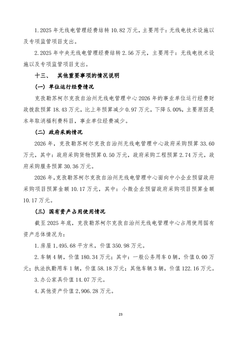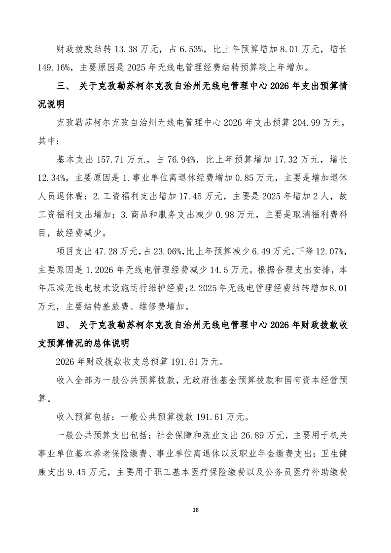 克孜勒苏柯尔克孜自治州无线电管理中心2026年单位预算公开报告